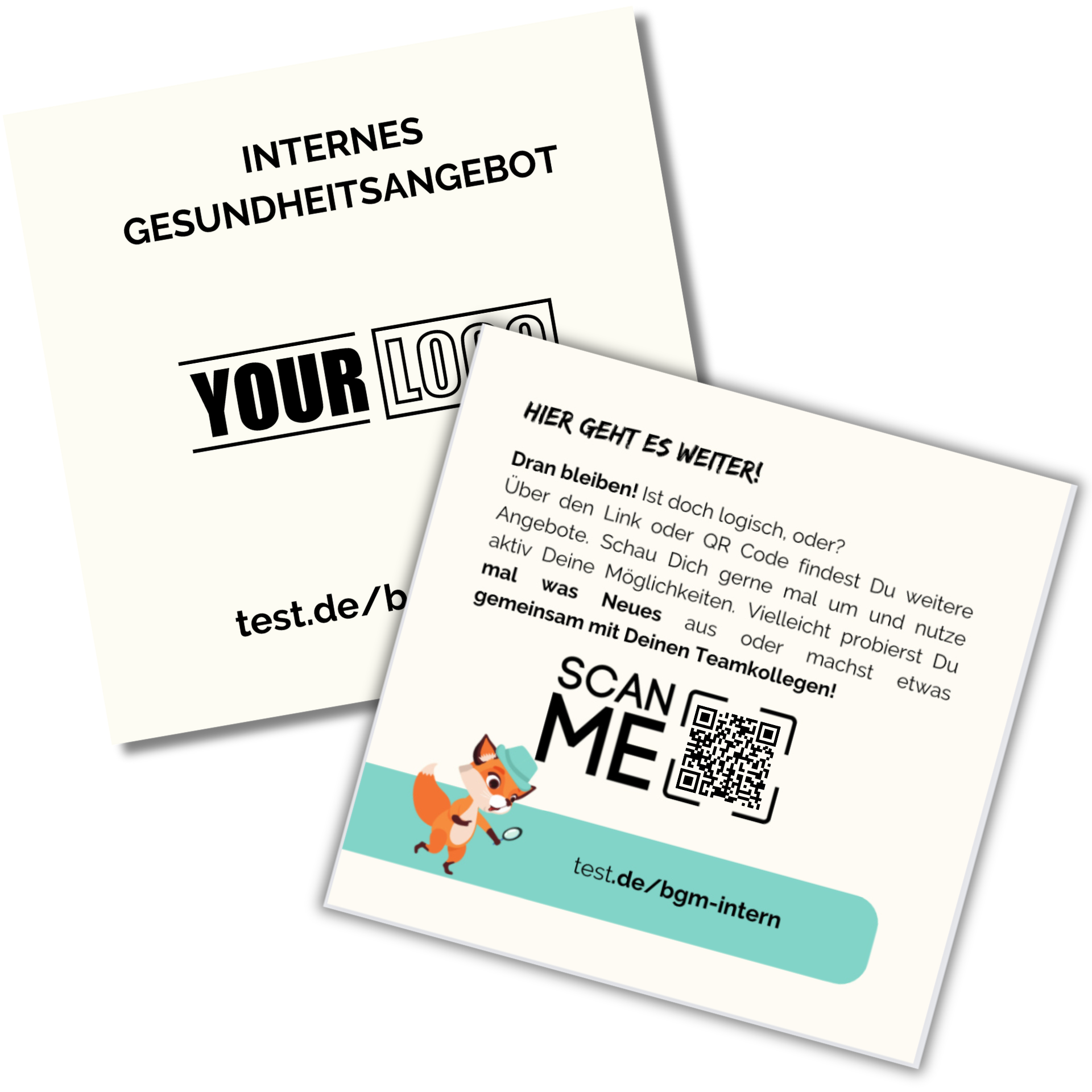 Karte: In jeder Box befindet sich eine Karte mit Logo, QR-Code und Link zu Ihrem BGM Angebot.