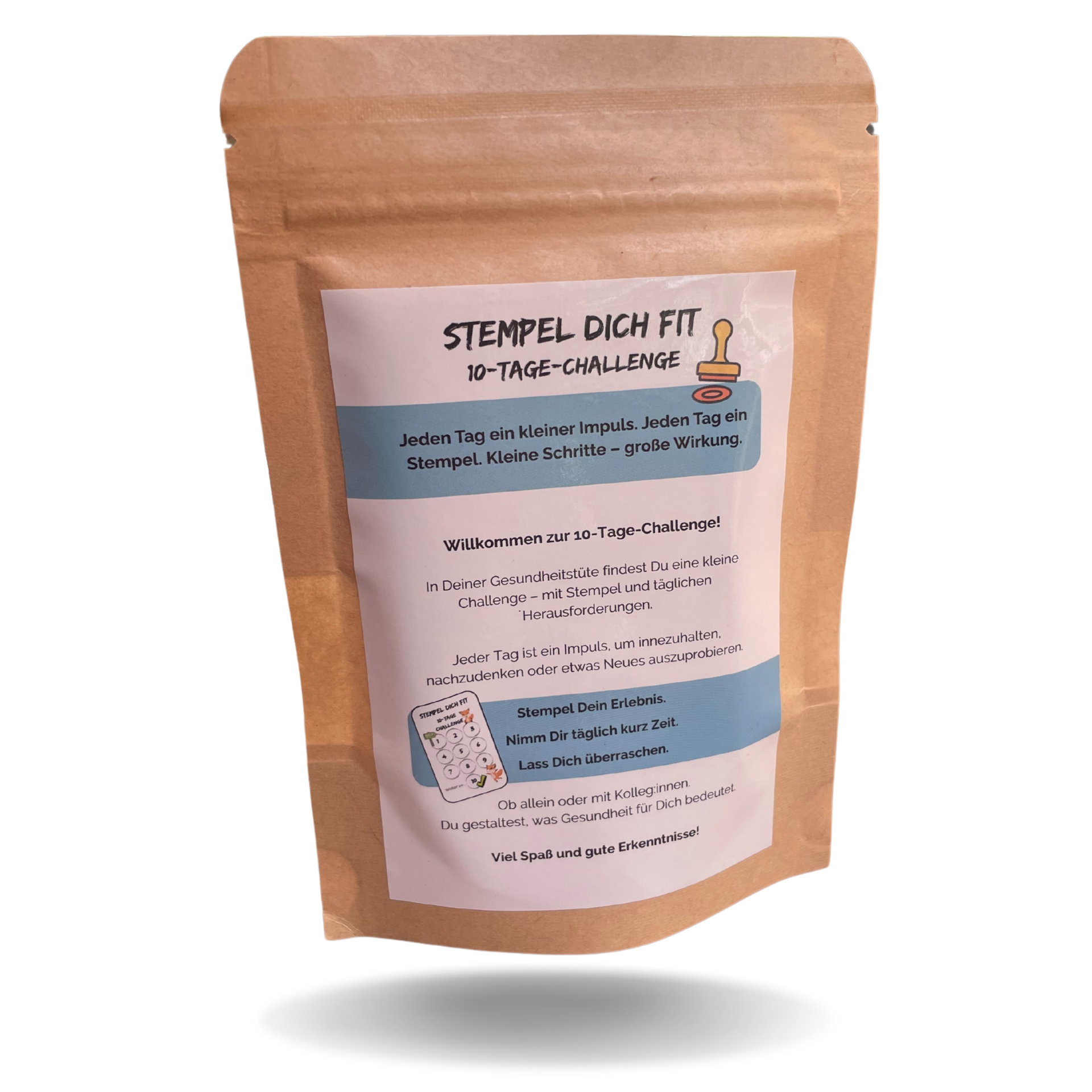 Die Gesundheitstüte ist ein praktischer Impuls für mehr Achtsamkeit, Selbstreflexion und Eigenverantwortung im Job.